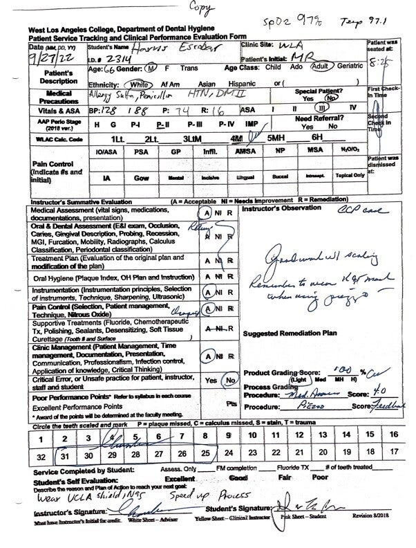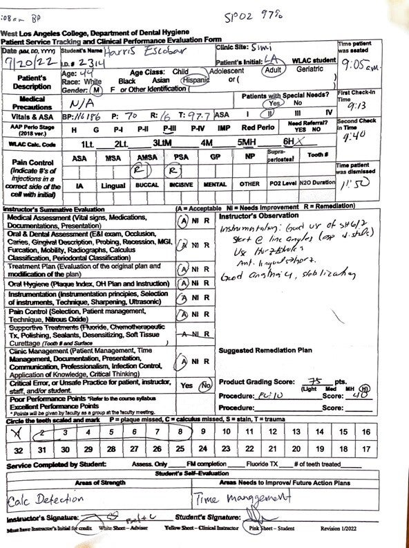- In hindsight, after completing the treatment and having professor Ogami evaluate me I received positive marks and she said that I was ready to complete products in a timely manner and had done a good scaling in a heavier residual calculus patient.