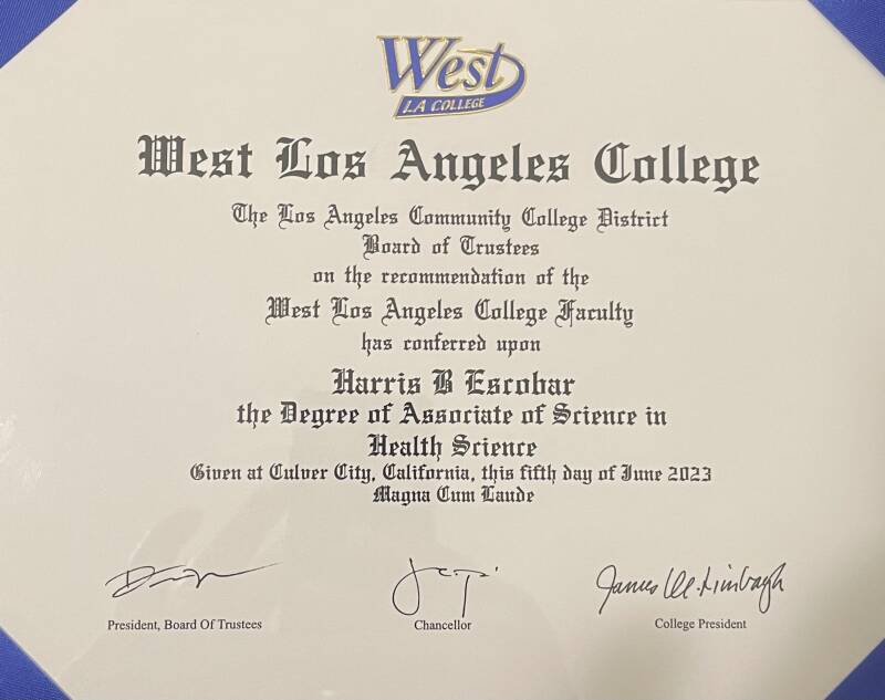 I have been able to finish the dental hygiene program at West Los Angeles College and will graduate June 6 2023. Going through the program has been one of the most enlightening experiences of my life, giving me the opportunity to attain higher education. I wish to pursue a master and doctorate degree in the future and be able to expand my horizons in the field of education, dentistry and health education. Once I receive my diploma it will proudly be displayed in this portion of my portfolio as Bachelor of Science in Dental Hygiene Magna Cum Laude.